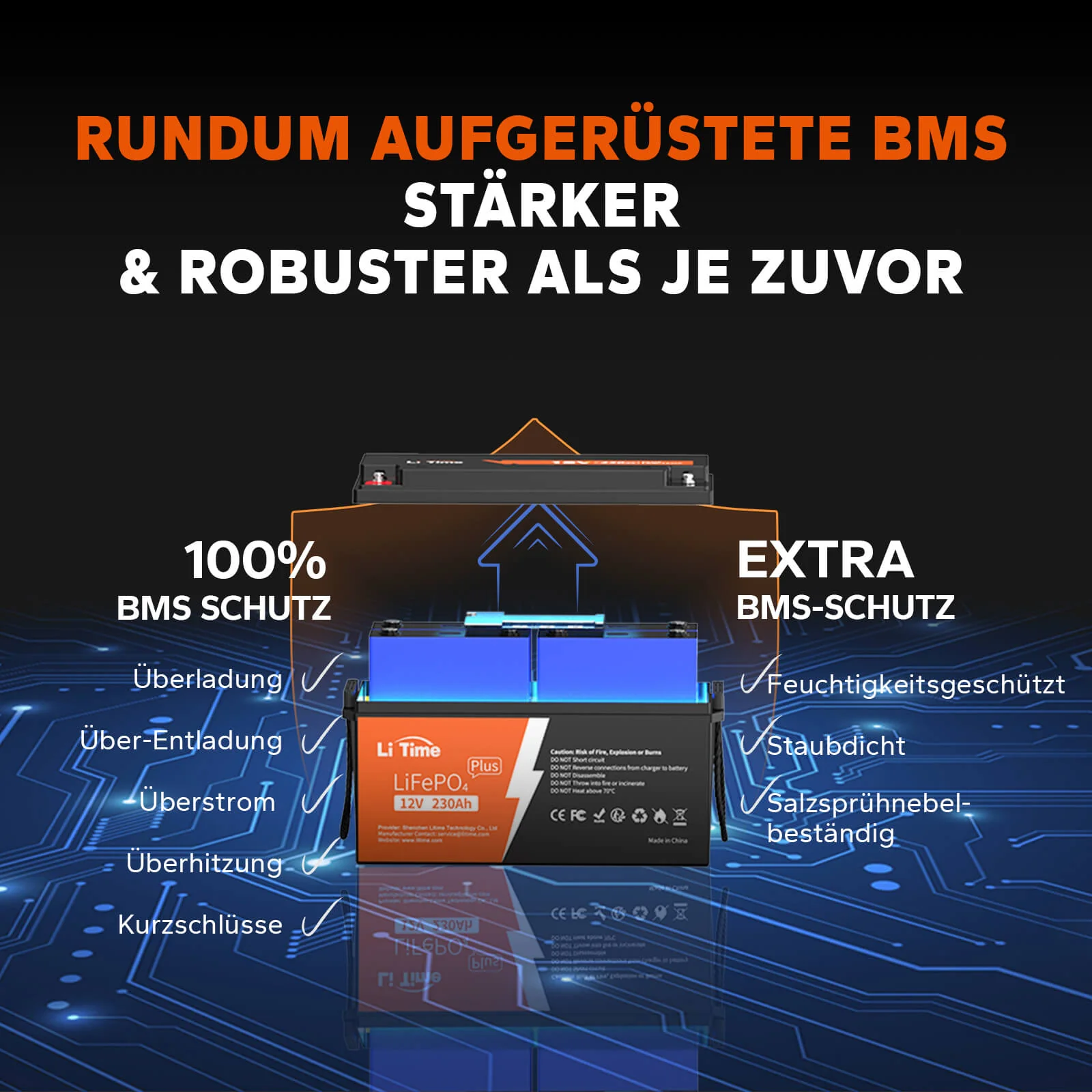 LiTime LiFePO4 12V 230Ah Plus Low-Temp-Schutz Deep Cycle Batterie - 200A BMS